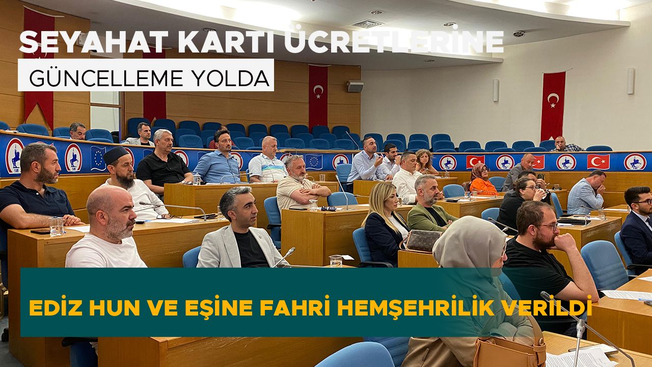 Türk sinemasının usta aktörü Ediz Hun ve eşi Berna Hun’a fahri hemşehrilik verilmesi maddesi oy birliği ile meclisten geçerken, ek ödenek konulması, imar ve şehircilik müdürlüğünde tarife değişikliği, pazaryeri tezgah tahsis bedelleri, seyahat kartları ve vize ücretlerine yönelik tarife değişikliği maddeleri de oylanarak Plan ve Bütçe Komisyonu’na havale edildi.
