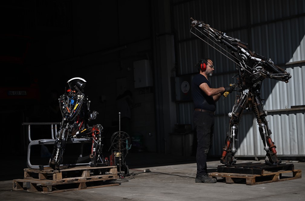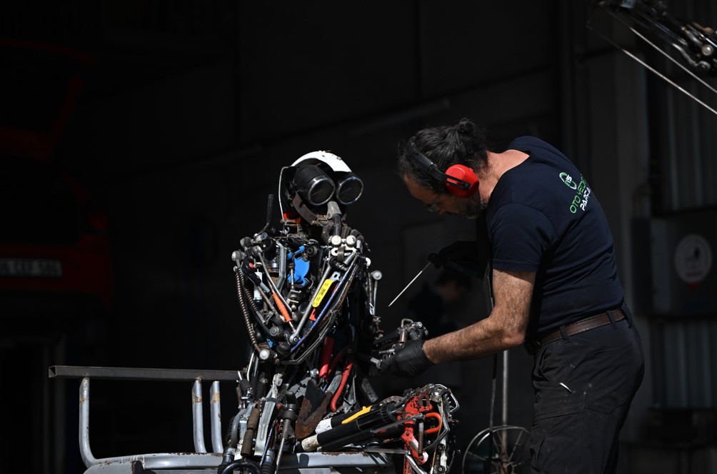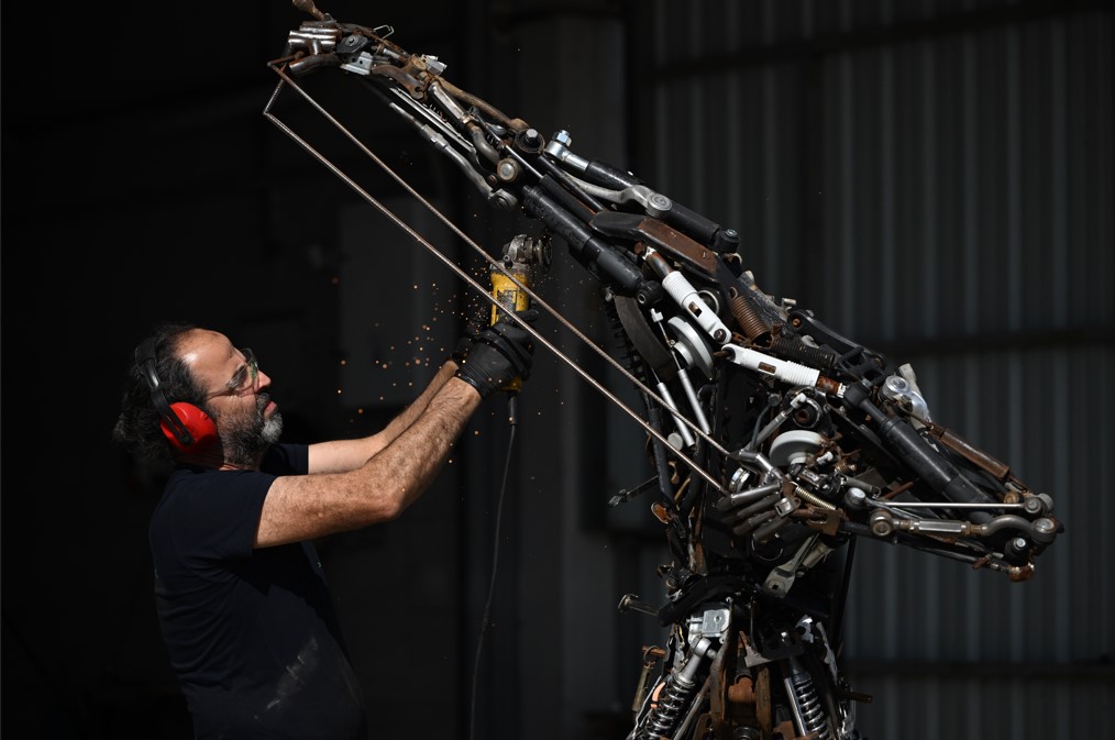 Yaklaşık 2 aylık çalışma sonucu Çetin, topladığı 500'e yakın atık malzemeden farklı boyutlarda 300'er kilogram ağırlığında, biri elindeki sapanla direnişi simgeleyen diğeri çocuklarına yemek bulmaya çalışan Gazzeli babayı sembolize eden iki maket robot yaptı.