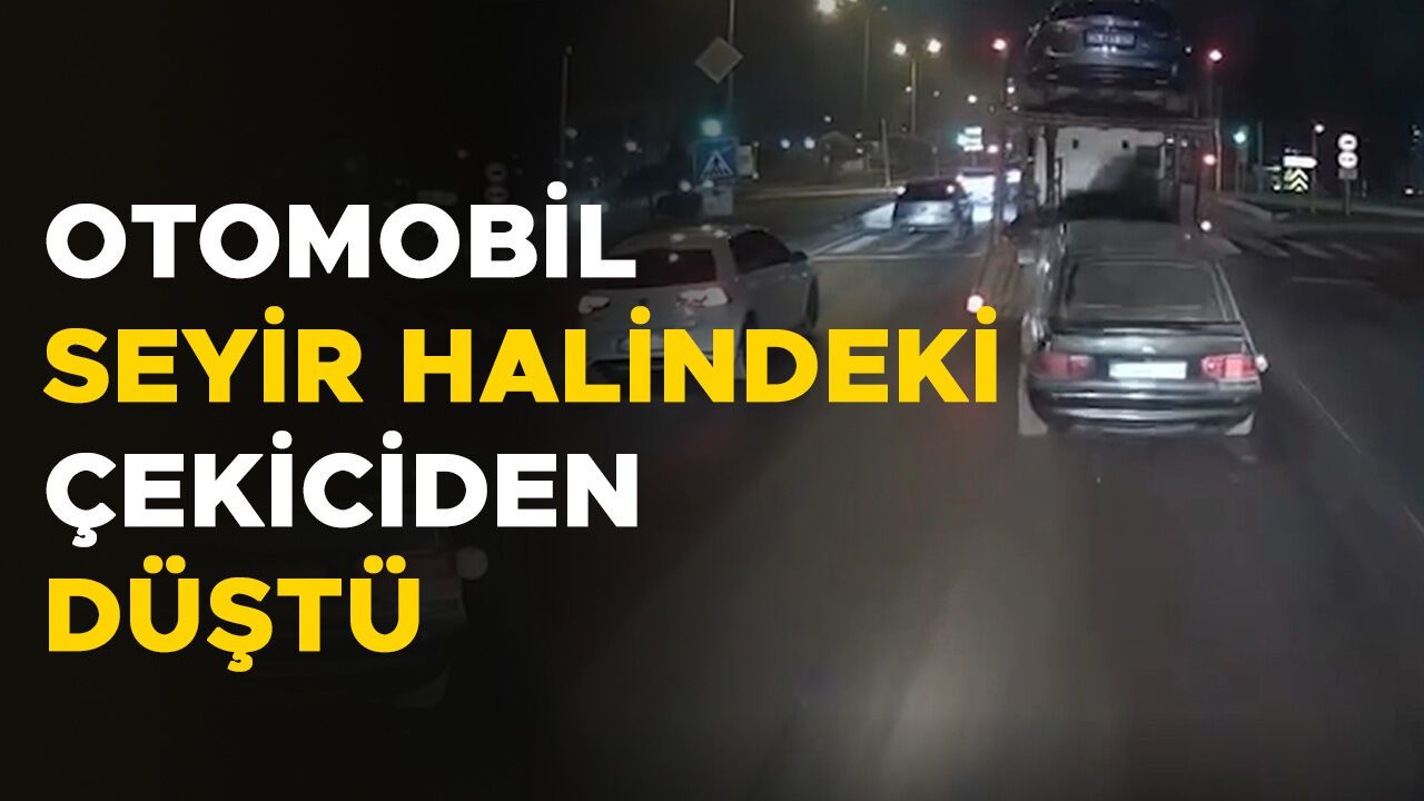 D-100 kara yolu Sanayi Kavşağı'ndaki trafik ışıklarında duran iki otomobil yüklü çekici, yeşil ışığın yanmasıyla hareket etti. Bu sırada çekicinin üzerinde bulunan bir otomobil yola düştü.