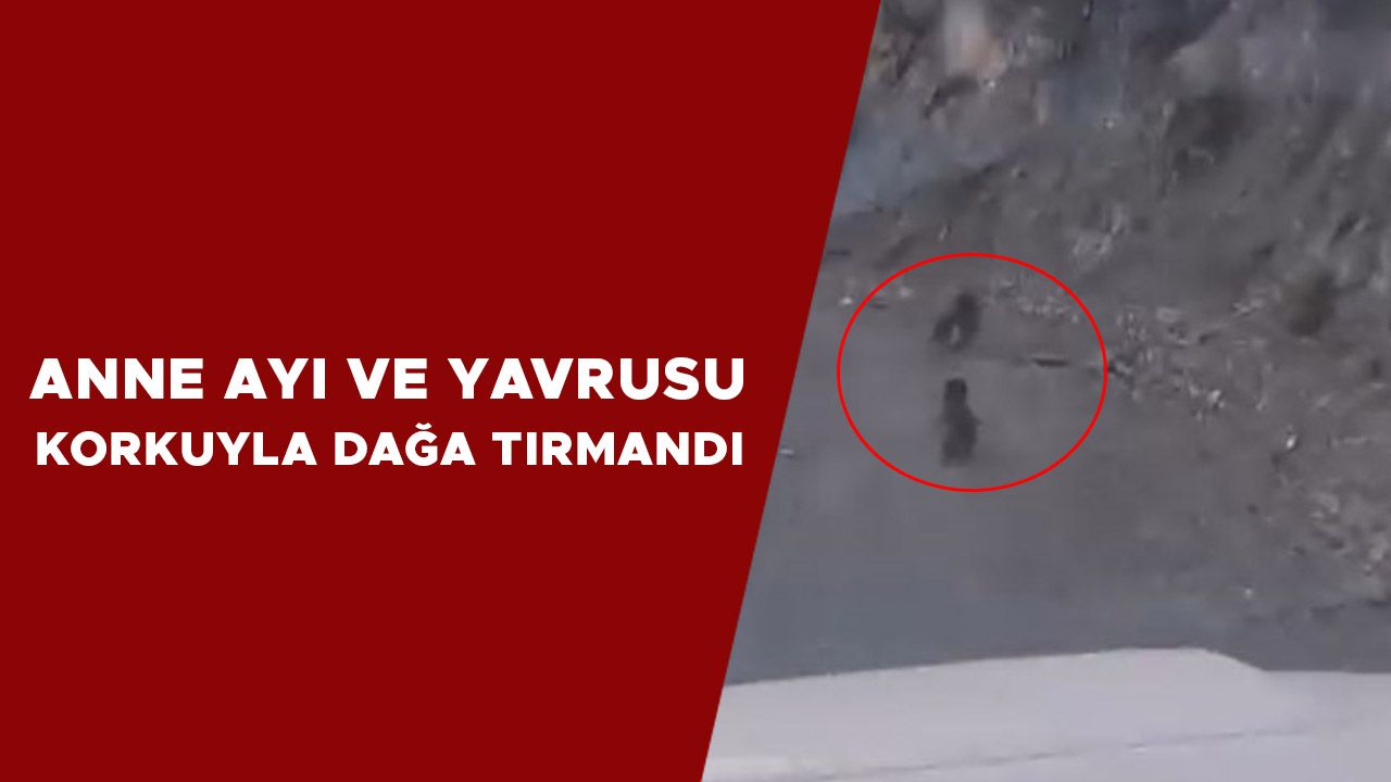 Cep telefonu ile kayda alınan görüntülerde, yavru ayının annesini takip ederek zorlu arazide hızla yukarıya çıkması dikkat çekti. O anlar sosyal medyada da büyük ilgi gördü.