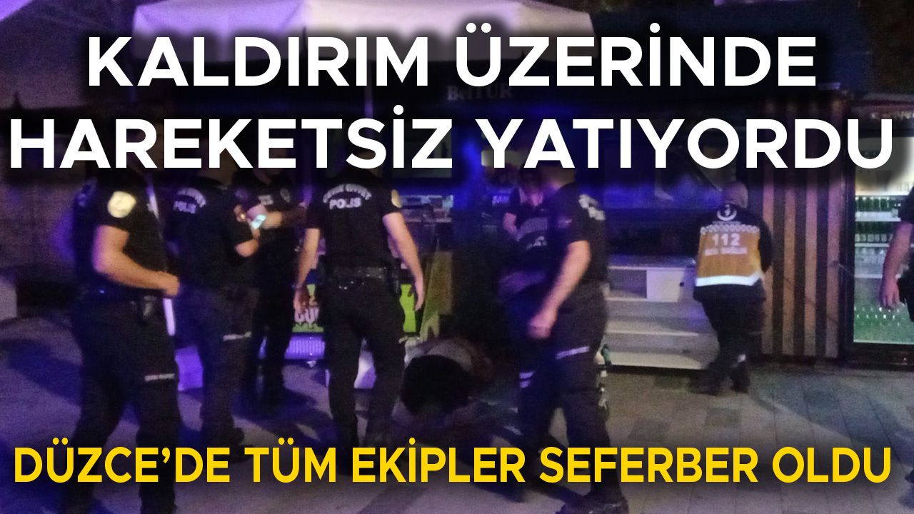 Şahsı kaldırım üzerinde hareketsiz yattığını gören çevredeki vatandaşlar, durumu Düzce 112 Acil Çağrı merkezine bildirdi.