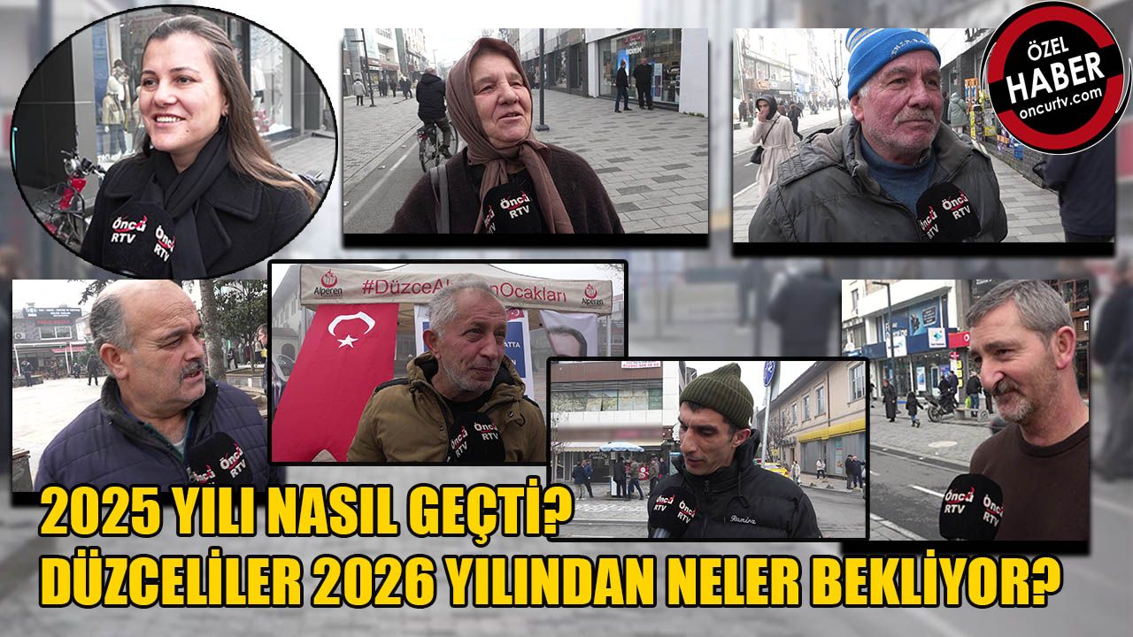 2026 yılına sayılı günler kala Öncü Haber ekibi, cadde ve sokaklara inerek, Düzceliler’e yeni yılla ilgili beklentilerini sordu. 2025 yılının ekonomik zorluklarla geçtiğini söyleyen Düzce halkı, 2026 yılına dair ise umutlarının olmadığını söylediler. Yeni yılın tüm insanlara sağlık, mutluluk, barış ve kardeşlik getirmesini ifade eden Düzceliler, Öncü TV mikrofonuna şu cevapları verdi: