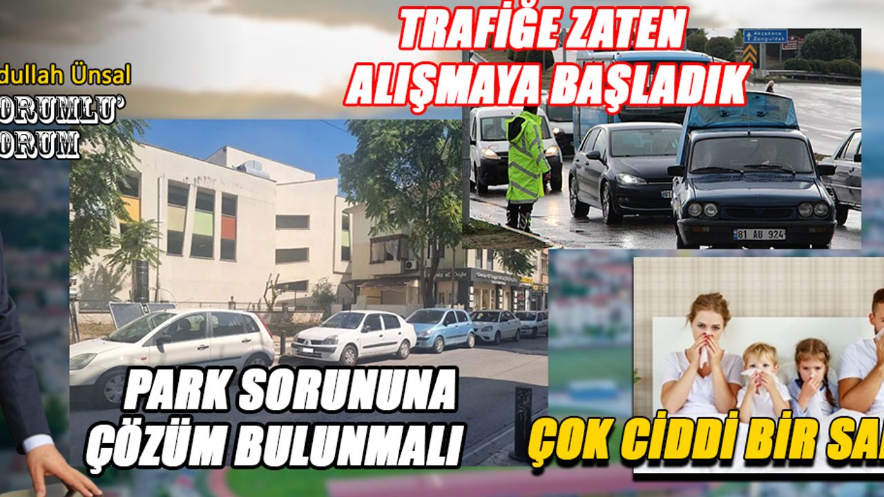 Gümüşovası’ndan Akçakoca’sına kadar Düzce merkez özellikle Şaguç Köprüsü’nden gidiyorsunuz, Aydınpınar'a doğru sağda arabalar park etmiş. Trafik çift yönlü gelip gidiyor, hem geliş var hem gidiş var. Oradan yürümek mümkün değil. Niye park ediyor ki bu arabalar. Düzce'nin birçok sokağında öyle araçlar park etmiş. Geçişler sıkıntı, yarın Allah muhafaza bir yangındı, bir belaydı derken bu alanlarda çok ciddi bir sorun yaşayabiliriz. Şehri yaşanılabilir hale getirmek için sadece siyasetin veya hizmet sektörünün alacak olduğu kararlar önemli değil. İnsanlarımız da buna katkı sunmalı. Hepsinden önemlisi şehir merkezlerinde ana arterler zaten park için; denetimler olsa da olmasa da pek durulmuyor fakat ara sokaklarda mutlak polis veya zabıta ekipleri hassasiyetle bu park sorununa çözüm bulmalı. Yolun kenarında ve ara sokaklarda ciddi bir sorun. İkincisi dikkat edin insanlarda bir rahatsızlık var, kolay kolay vücuttan atılmayan bir virüsten bahsediliyor. Önümüzdeki günlerde Düzce için artık ani hava değişimiyle beraber kar bekleniyor.