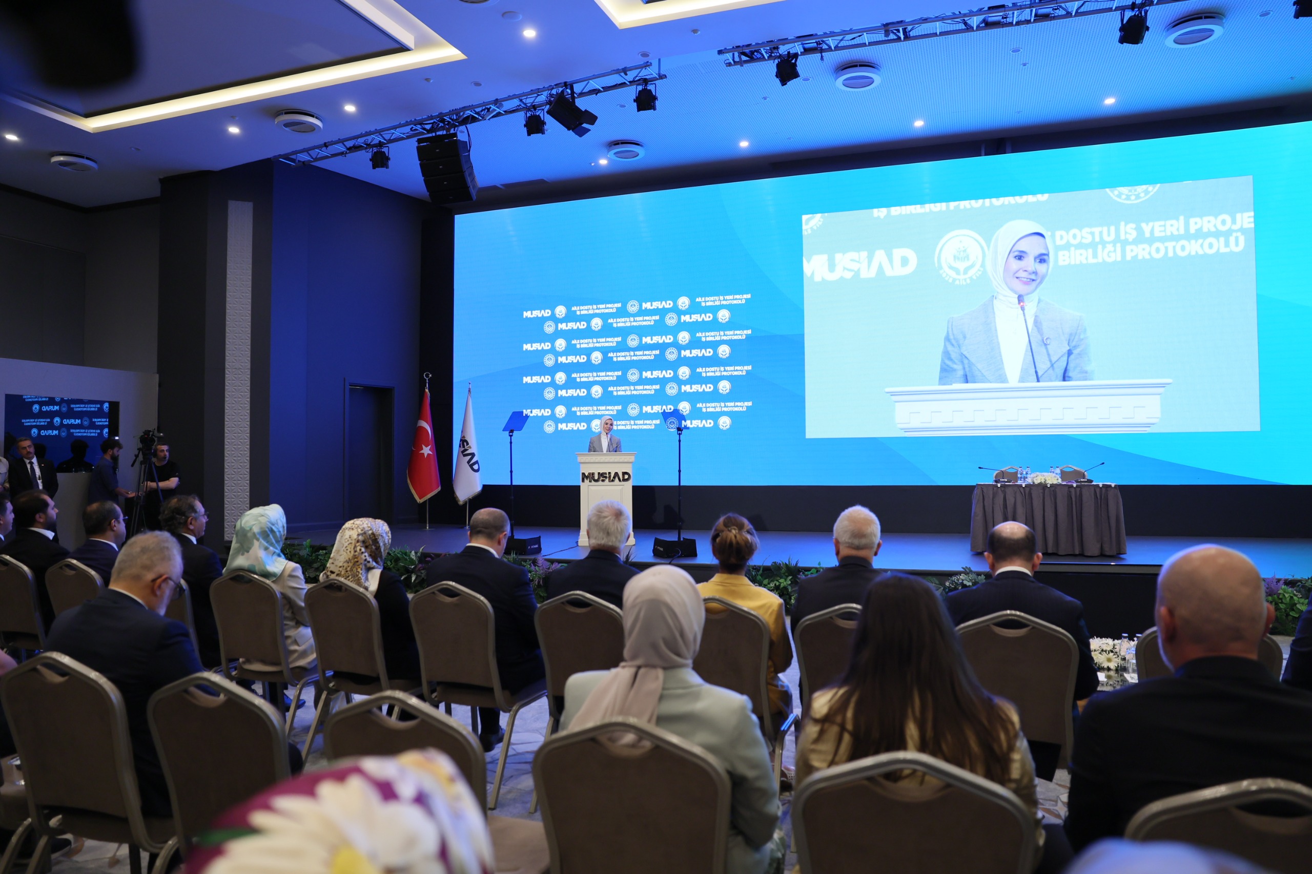 Bakan Göktaş, MÜSİAD ile birlikte yürütecekleri "Aile Dostu İş Yeri Projesi"nin iş ve aile yaşamı arasında denge kurulmasını ve aile yapısının sağlıklı gelişimini destekleyen bir çalışma olduğunu vurgulayarak, şöyle devam etti: