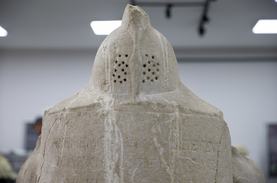 Tepecik Mahallesi'nde Roma döneminde mezarlık olarak kullanıldığı belirlenen bölgede bulunduktan sonra teslim edildiği Bolu Müzesi envanterine "Gladyatör Mezar Anıtı" olarak kaydedilen eser, "Kalkhedon'dan Klaudiopolis'e" sergisi kapsamında ilk defa ziyarete açıldı.