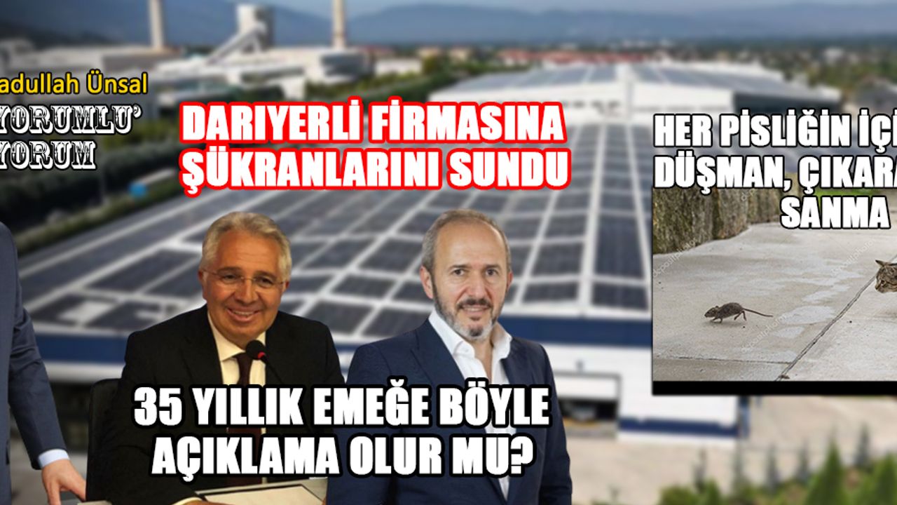 Türkiye'nin ve Düzce'nin önemli kuruluşlarından biri olan Pekintaş’ın başından genel müdür olan Faruk Darıyerli ayrıldı. Pekintaş, Düzce'de yıllardan beri inşaat sektöründe, hazır beton diye bildiğimiz ve daha sonra Aluform ve Schmit olarak dünya pazarına çıkan, Türkiye liglerinde güzel bir yeri olan Düzce'den doğan bir firma. Bu firma özellikle de geçtiğimiz günlerde Karaman bölgesinden 4 bin dönüm bir alanda Türkiye'nin devleriyle beraber girilen bir ihalede, ihaleyi alarak büyük bir yatırıma da ev sahipliği yapan bir firma. Burada 35 yıl görev yapan Genel Müdürü Faruk Darıyerli, geçen hafta cuma günü itibariyle görevinden el çektirildi veya ayrıldı. Burada bir açıklama yapmıştı Pekintaş. Demişti ki; ‘Faruk Darıyerli bizden ayrılmıştır. Bizi temsil etme yetkisi yoktur.’ ‘35 yıllık hizmete teşekkür etmedi.’ diye yerel basından arkadaşlarımız haberler, yorumlar yaptı. Ben de kendisine sordum. Özhan Bey (Pekintaş Grup Yönetim Kurulu Başkanı Özhan Olcay)'e sordum. Ticaret adamı ve topluma hitap eden özelliğiyle beraber bana çok naif, nazik bir şekilde konuyu gerektiği gibi anlattı. Çok şey anlattı da yani benim anlatabileceğim şey bu kadar. ‘Bu açıklamanın böyle yapılması gerekiyor.’ dedi ki ben dinledikten sonra hak da verdim. İşin bir ön planı var, konuşulan edilen bir bölüm var. Bir de arka plan var. Her zaman verdiğimiz bir örnek var; sizin gemiyi limana hangi fırtınada hangi sebeplerle getirdiğinizi kimse bilmez. Geminin limana girip girmediğine bakar. Bugün de Faruk Bey bir açıklama yaptı. Şükranlarını sundu, işi yumuşatma noktasında. Aslında tam olması gereken olmuş, eksik de olmuş bana göre. Pekintaş açıklaması olması gerektiği gibi de olmuş ama eksik olmuş.