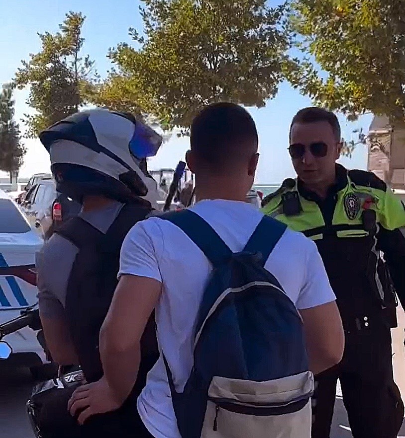 Polis memuru nasihatin arından kask takmayan gence cezai işlem uyguladı.