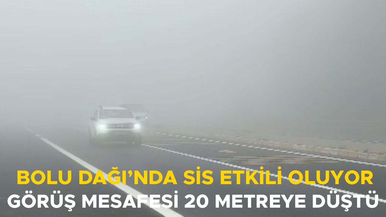Bolu Dağı’nda etkili olan yoğun sis sebebiyle görüş mesafesi yer yer 20 metreye kadar düşerken sürücüler ilerlemekte güçlük yaşıyor.