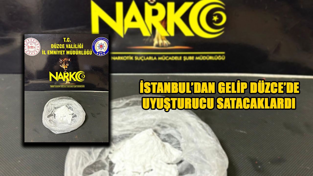 Düzce Cumhuriyet Başsavcılığı koordinesinde uyuşturucu satıcıları ile mücadeleye yönelik operasyonlar bütün hızıyla devam ediyor. Bu çerçevede M.K. ve Ş.U isimli şahısların şehir dışından gelerek yanlarında getirdikleri uyuşturucuyu sattıkları yönünde gelen istihbarı bilgiyi değerlendiren Narkotik Suçlarla Mücadele Şube Müdürlüğü ekipleri şahıslara operasyon düzenledi. Şahıslar suçüstü yakalanarak gözaltına alındı.