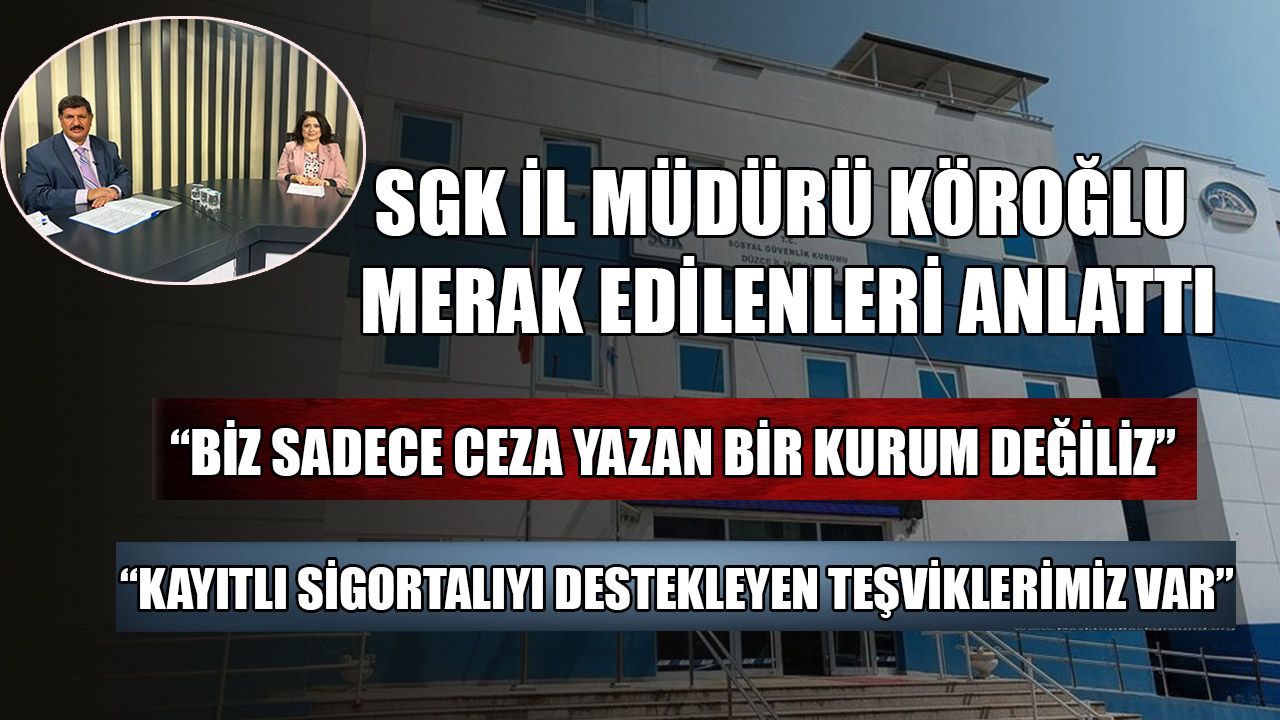 Düzce Sosyal Güvenlik Kurumu (SGK) İl Müdürü Necmi Köroğlu, kayıt dışı istihdam, kademeli emeklilik ve emekli çalışanlar ile ilgili Öncü TV ekranlarındaki ‘Güne Merhaba’ programında önemli açıklamalarda bulundu. Düzce’de kayıt dışı istihdama karşı farkındalığın giderek arttığını kaydeden Köroğlu, “Çünkü biz gerekli bilgilendirmeyi yaptık. Biz bu konuda işveren ve işçileri de bilgilendiriyoruz." dedi. Köroğlu, işyerinde emekli olanları çalıştıran işverenleri ise Sosyal Güvenlik Primi konusunda uyardı.