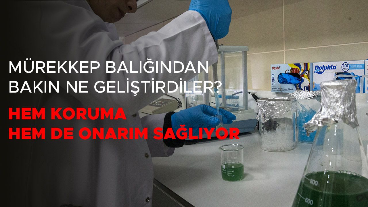 Mürekkep balığının kesesindeki melanin parçacıkları ile laboratuvar ortamında üretilen alg pigmentleri birleştirilerek, doğal etkenli bir cilt onarıcı ve koruyucu güneş kremi üretildi.
