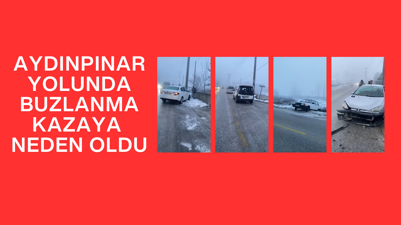 Sabah saatlerinde Aydınpınar yolu güzergâhında etkili olan yoğun buzlanma, maddi hasarlı trafik kazalarına neden oldu. Kaygan zemin nedeniyle kontrolden çıkan araçlar yol kenarına savrulurken, bazı araçlarda ciddi hasar meydana geldi.