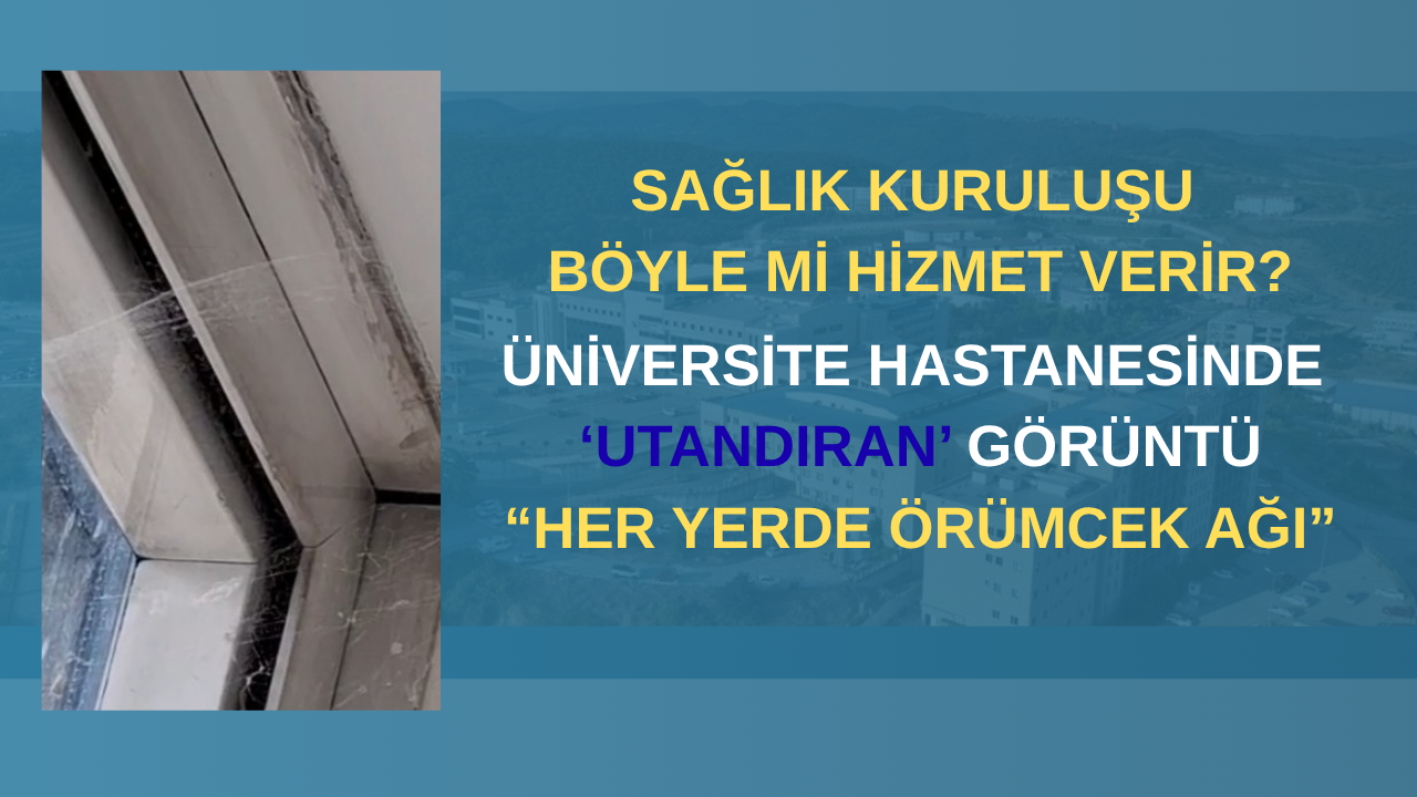 Son olarak Düzce Üniversitesi Araştırma ve Uygulama Hastanesi ‘Yatan Hasta Servisi’nde kayda alınan görüntüler ‘Utandırdı.’. Uzun süredir temizlenmeyen pencerelerin etrafını saran örümcek ağlarından duyduğu rahatsızlığı yaptığı ihbarla kelimelere döken vatandaş, şu ifadeleri kullandı: