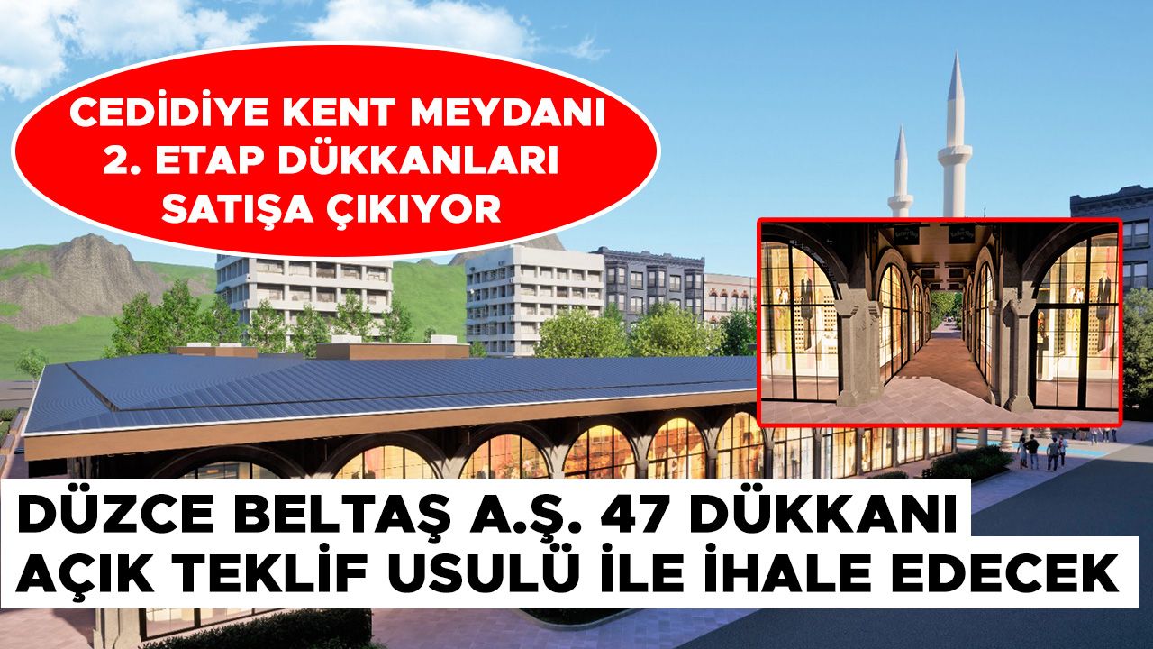 Düzce Belediye Başkanı Dr. Faruk Özlü’nün şehrin değişimi ve dönüşümü noktasında hayata geçirdiği Cedidiye Kent Meydanı Projesi’nin ikinci etabı kapsamında inşa edilen 47 dükkan daha önceden açıklandığı üzere ihale yöntemi ile satılacak.