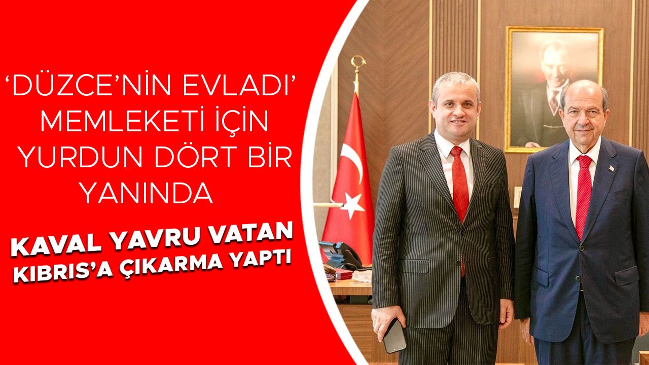 Kaval yaptığı açıklamada, “Pazar günü yapılacak olan cumhurbaşkanlığı seçimi öncesi anavatan Türkiye’mizin kalbi yavru vatanımız ve gönlümüzdeki sevdanın maviyle buluştuğu yer Kıbrıs Türk Cumhuriyeti’nde Cumhurbaşkanımız Sayın Ersin Tatar’ı ziyaret ettik. Ziyarette Cumhurbaşkanı Tatar ile Türkiye ve Kıbrıs’ın kardeşi belediyesi Düzce’nin yanı sıra 19 Ekim Pazar günü yapılacak olan cumhurbaşkanlığı seçimi ile de istişarelerde bulunduk.”