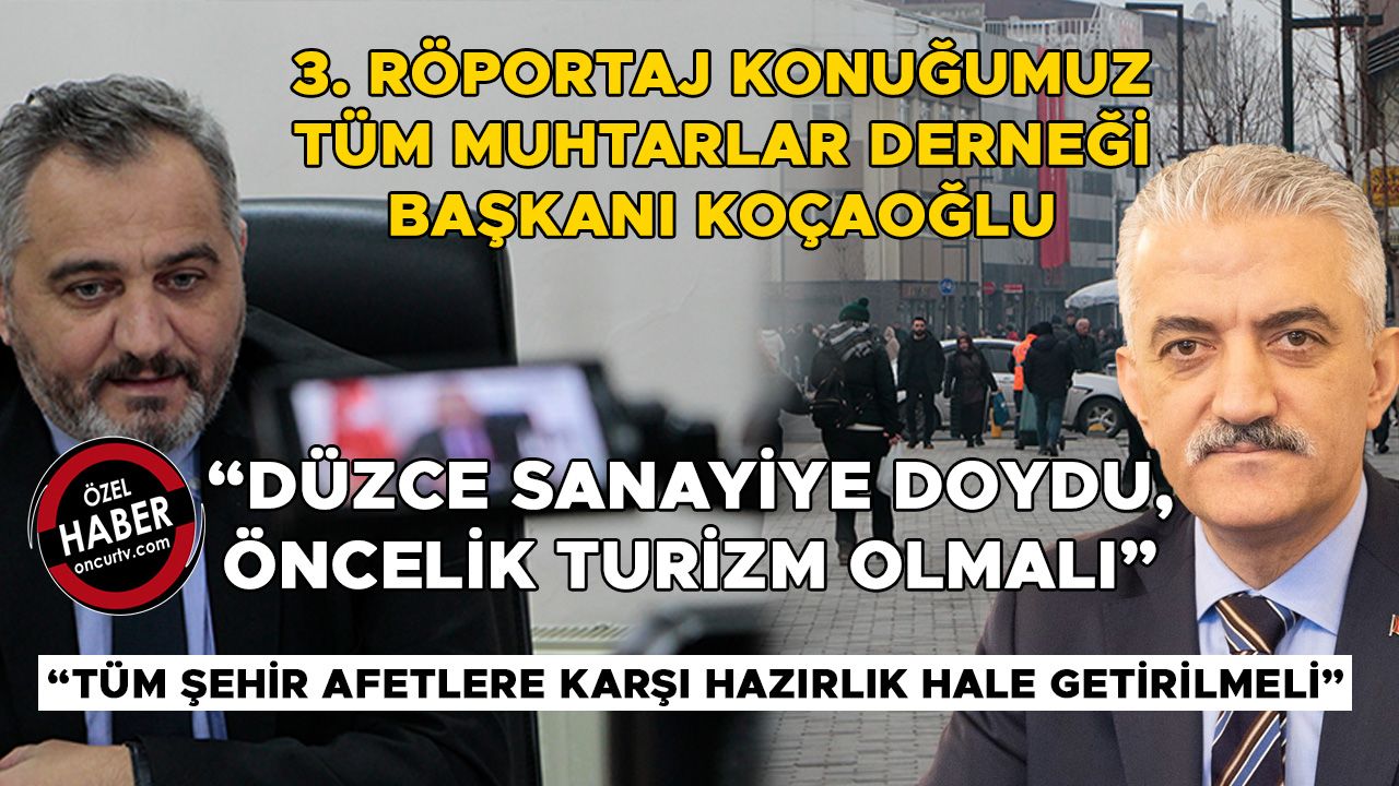 Düzce Valisi Mehmet Makas’tan Düzce’nin beklentilerini toplumun farklı kesimlerine sormak amacıyla röportaj serisine başlayan Öncü Haber ekibi, röportaj serisinin üçüncü bölümünde Düzce’de 70 mahalleyi kapsayan muhtarlardan oluşan Tüm Muhtarlar Derneği’nin Başkanı Fikret Koçaoğlu’nun görüşlerini aldı. Öncü Haber’den Zeki Aşıkoğlu ve Tuğba Aksoy’a açıklamalarda bulunan Koçaoğlu, Düzce’nin bir afet ili olduğuna dikkat çekerek, olası depremler ve diğer afetlere karşı hazırlıklı olunması gerektiğini belirtirken, gelişme sürecinde ise önceliğin artık turizm olması gerektiğine dikkat çekti. Gerçekleştirilen söyleşinin ardından kent merkezinde vatandaşlara mikrofon uzatan Öncü Haber ekibine konuşanlar ise, Düzce’de kontrolsüz üremeye bağlı olarak sayıları her geçen gün artan ve tehlike oluşturan başıboş köpekler için çalışma yapılmasını talep etti.