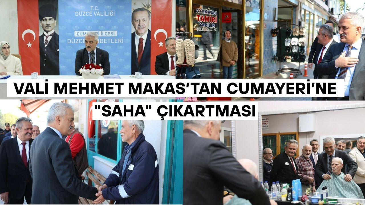 Vali Mehmet Makas, Cumayeri programına Kaymakamlık ziyareti ile başladı. Cumayeri Kaymakamı Şeyma Şendur ve Belediye Başkanı Mustafa Koloğlu tarafından karşılanan Vali Makas, ilçedeki kamu yatırımları hakkında bilgi aldı.