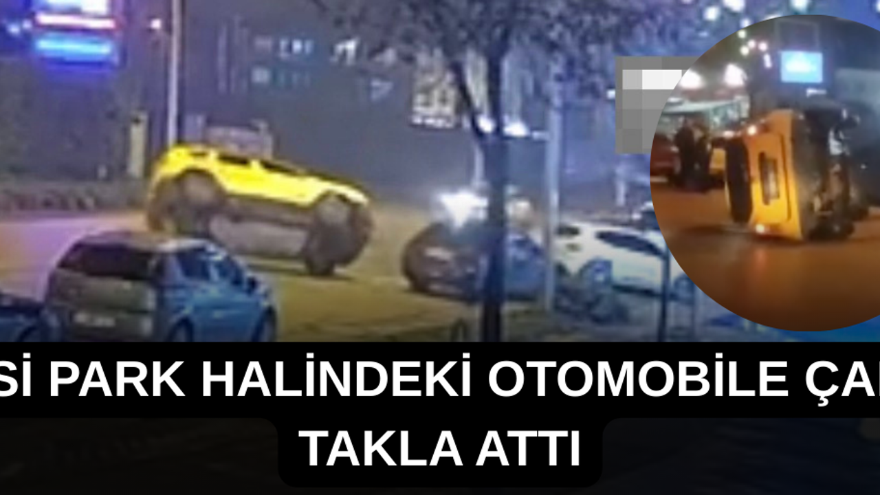 TAKSİ PARK HALİNDEKİ OTOMOBİLE ÇARPIP TAKLA ATTI
