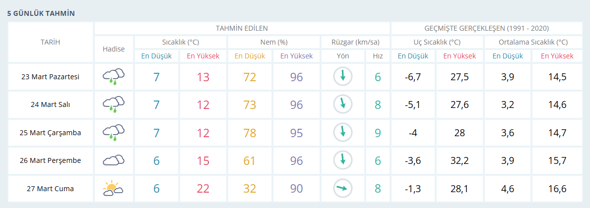 MGM’nin tahminlerine göre Düzce’de hava sıcaklıkların hafta genelinde kademeli olarak artması beklenirken kentte Cuma günü en yüksek sıcaklığın 22 derece olacağı tahmin ediliyor.