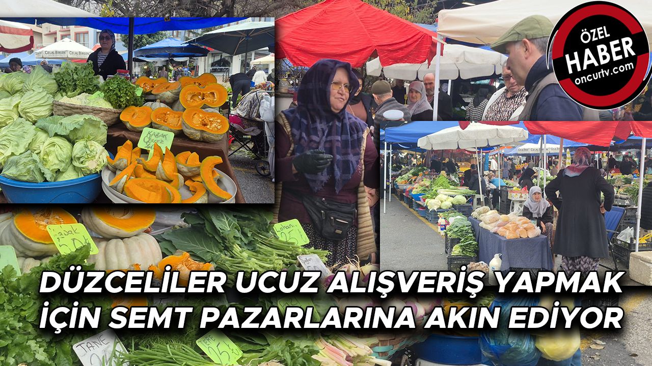 Düzce’de alışverişlerini daha ucuza getirmek isteyen vatandaşlar, semt pazarlarına akın ediyor. Bu durum, pazarcı esnafının yüzünü güldürürken, vatandaşlar da pazar çantalarını kış mevsiminin vazgeçilmezleri arasında bulunan sebze ve meyveleri doldurma imkanı buluyor.
