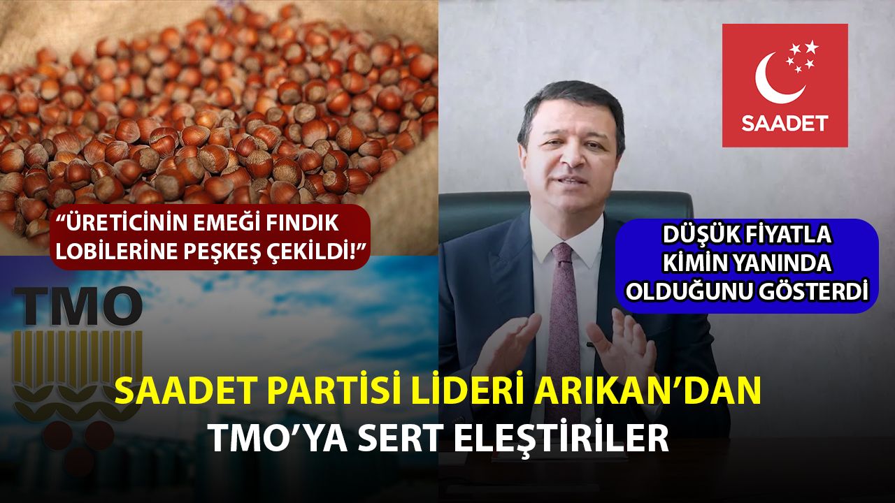 Saadet Partisi Genel Başkanı Mahmut Arıkan, serbest piyasada 250 liraya kadar satılan fındık için 2025 yılı alım fiyatını 195 lira olarak açıklayan Toprak Mahsulleri Ofisi (TMO)’ni “Kimin yanında yer aldığı konusunda kendisini ele verdi.” vurgusuyla eleştirdi.