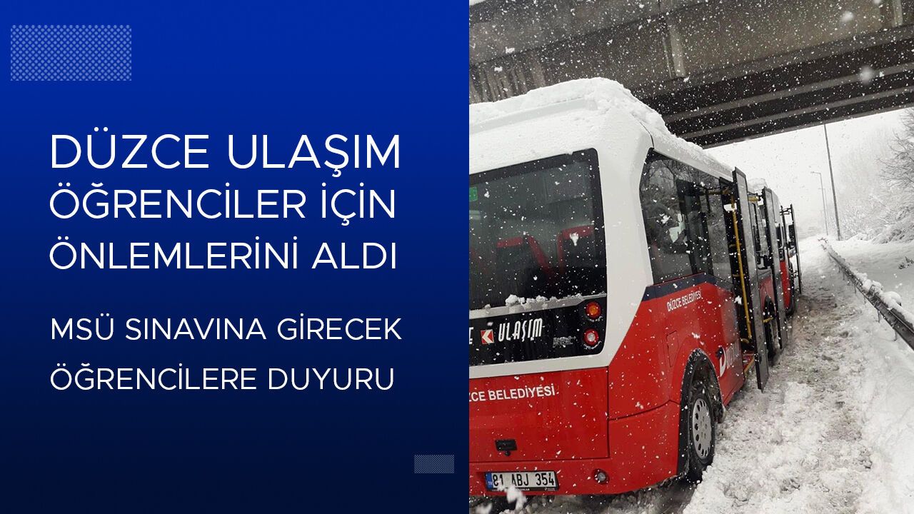 Düzce Ulaşım A.Ş. Genel Müdürü Murat Postoğlu, sınavın Düzce Üniversitesi Kampüsü’nde yapılacak olmasından dolayı, tüm şehir içi ulaşım araçlarının hafta içi olduğu gibi kısa aralıklarla seferlerine devam edeceğini belirtti.