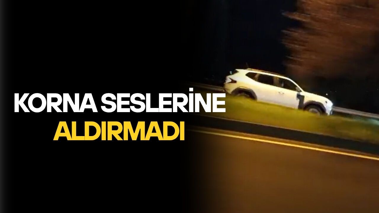 Vatandaşların korna çalarak ve bağırarak yaptığı uyarılara aldırış etmeyen sürücü, karşı yönden gelen araçlara rağmen hızını artırarak yoluna devam etti. Yaklaşık 100 kilometre hıza ulaştığı tahmin edilen ve trafiği tehlikeye düşüren otomobil, bir süre sonra gözden kayboldu.