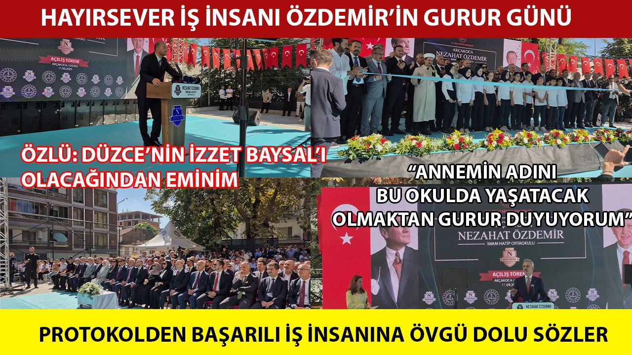 Düzce’de hayır işlerinde parmakla gösterilen Müstakil Sanayici ve İş Adamları Derneği (MÜSİAD) Genel Başkanı ve Optimal Yönetim Kurulu Başkanı Burhan Özdemir’in yapımını üstlendiği ve annesinin adını taşıyan Nezahat Özdemir İmam Hatip Ortaokulu’nun resmi açılış töreni bugün Ulaştırma ve Altyapı Bakanı Abdulkadir Uraloğlu’nun katılımıyla gerçekleştirildi. Memleketine bir eğitim yuvası daha kazandırmanın mutluluğunu yaşayan Özdemir, törendeki konuşmasında, “Hayatımın en anlamlı köşesinde yaşadığım memleketim Akçakoca’da, yine hayatımın en anlamlı parçası olan annemin adını bu okulda yaşatacak olmakla gurur duyuyorum ve bize bu imkânı tanıyan herkese teşekkürlerimi sunuyorum.” dedi. Başkan Özlü ise övgü dolu sözlerle bahsettiği başarılı iş insanı için “Burhan Bey’in eğitime ve Akçakoca’ya katkıları hiç şüphesiz tüm Düzce için iftihar kaynağıdır. Burhan Bey’in önümüzdeki dönemde Düzce’nin İzzet Baysal’ı olacağını temenni ediyoruz.” ifadelerini kullandı.