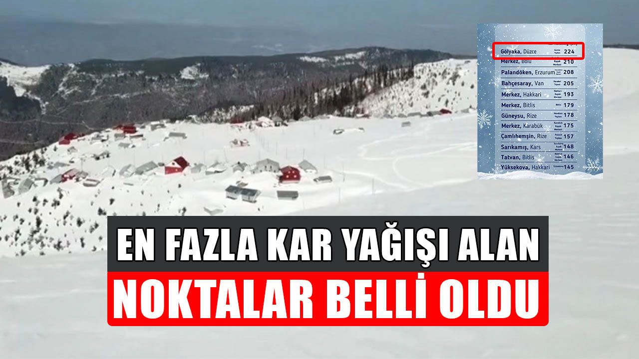 224 santimetre yükseklik ile birinci sıraya çıkan Kardüz Yaylası’nı, 210 santim ile Bolu Kartalkaya, 208 santim ile Erzurum Palandöken, 205 santim ile Van Bahçesaray Karabat tepesi, 193 santim ile Hakkari, 179 santim ile Bitlis, 178 santim ile Rize Güneysu Handüzü yaylası, 175 santim ile Karabük, 157 santim ile Rize Çamlıhemşin Palovit yaylası, 148 santim ile Kars Sarıkamış, 146 santim ile Bitlis Tatvan ve 145 santim ile Hakkari Yüksekova takip ediyor.