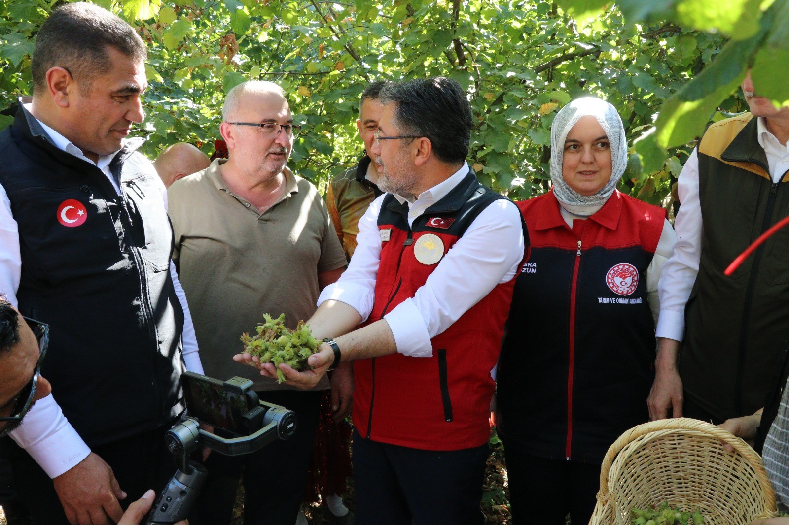 Konuşmasının ardından Bakan Yumaklı, Kırsal Kalkınma Yatırımlarının Desteklenmesi 16. Etap Programı kapsamında hibe desteği almaya hak kazanan üreticilere hediye çeklerini verdi. Çek takdiminin ardından Bakan Yumaklı, fındık bahçesine girerek fındık topladı.