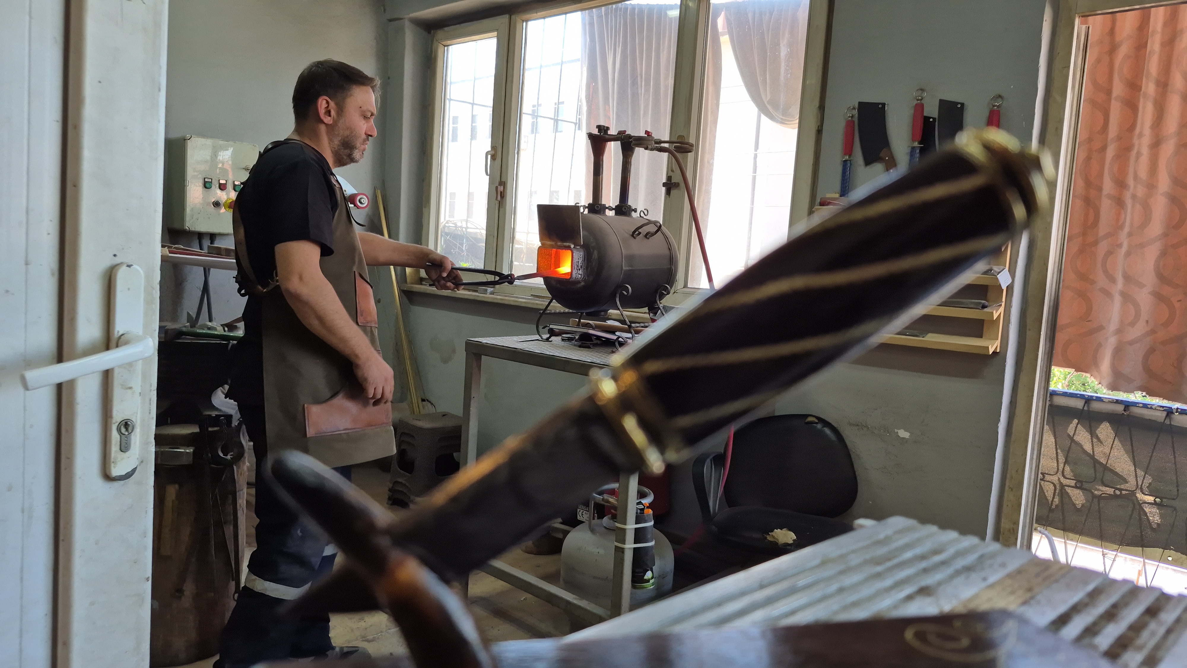 “17 Yıldır bıçak yapıyorum. Ben 17 yıldır yapıyorum. Mesleğin asıl ustası büyük dedem. Benden başka ailede kimse yapmadı. Yani mesleğimi dedemden ben devraldım. Biz bıçağa farklı bir boyut kazandırdık. Yani standart düz bir bıçak yapmıyorum. Bıçakta gravür, tel kari, figür yapıyoruz. Kılıflarını da ona uygun yapıyoruz. Bu alanda da 2020 yılında Kültür ve Turizm Bakanlığı tarafından Devlet Sanatçısı ünvanı9 verildi. Sonrasında da UNESCO Kültürel miras taşıyıcısı olduk. Elimizden geldiğince bir şeyler yapmaya çalışıyoruz. Her geçen gün üzerine bir şeyler katmaya çalışıyoruz. Yani bir bıçaktan çok daha ötesini oluşturma gayretindeyiz. Her meslekte olduğu gibi bunun da birtakım zorlukları var ama sevince kolaylaşıyor. Her şeyden önce bir işi sevmek lazım. Yaptığın işe saygı duymak lazım. Yaptığın mesleği sevmen gerekiyor ki o zorluklar kolaylaşsın.