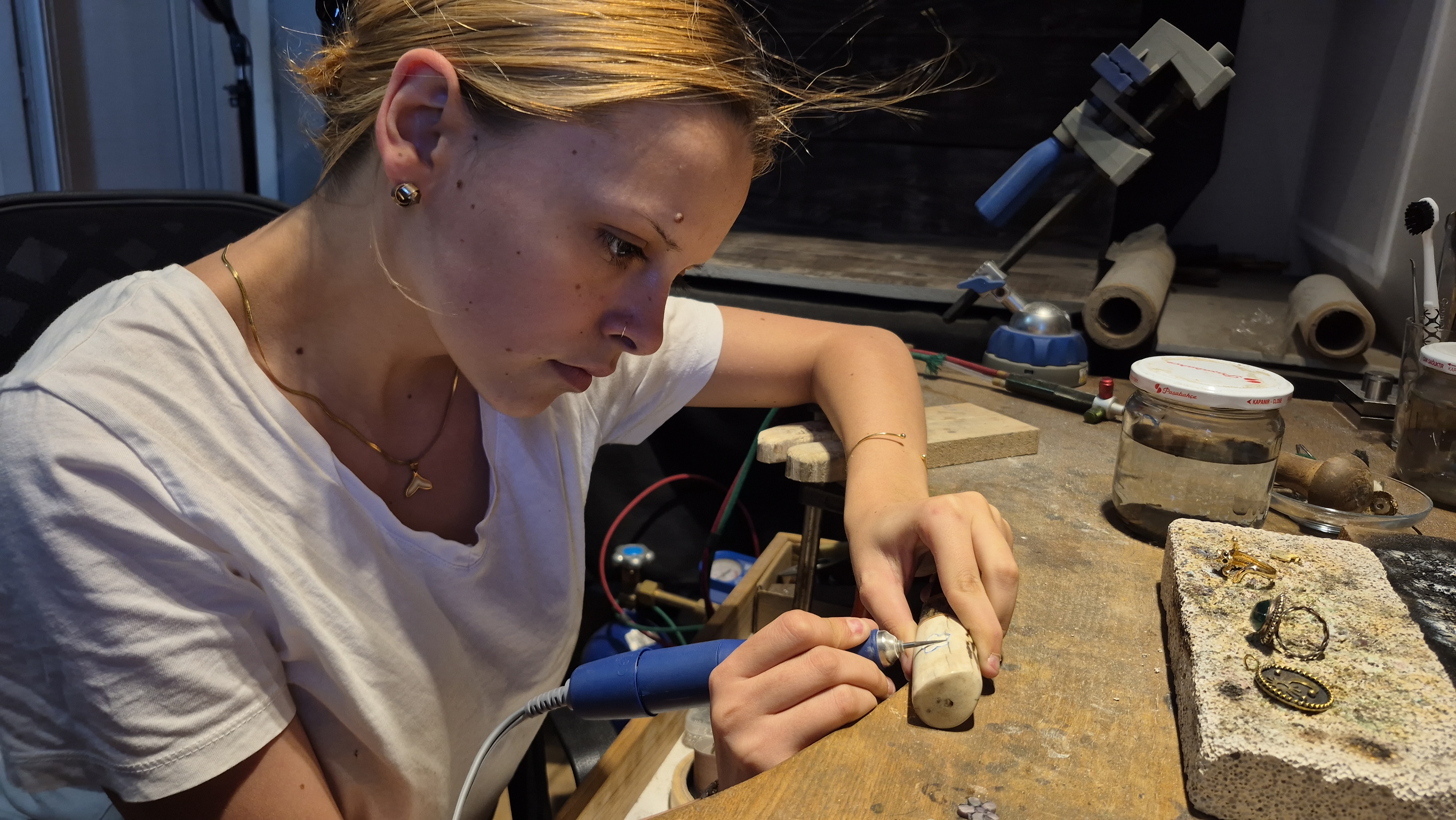 Kızı Yaprak Altınışık ise “Kuyumcu ustasıyım bir taraftan da babamın yanında bıçak ustalığını öğrenmeye çalışıyorum. Her mesleğin kendine göre bir zorluğu var. Şu anda çırak olarak ilerlediğim için daha çok zorlanıyorum. Bıçak yaparken daha çok gravür kısmında zorlanıyorum. Kabza kısmında işlemeler, dokular çalıştığımızda daha çok zorlanıyorum. Bıçak yapmaya ise öncelikle kuyumcu ustalığına başlamıştım. İki yıl süren bir eğitimim var ona çalışıyordum. Daha sonrasında bu eğitimimi mesleğe taşımak istediğim için babam bana bir atölye kurdu. Orada ilerlemeye devam ettim. O bıçak yaparken ben gördükçe merakım arttı. Babam da bana yardımcı oldu. Bıçak yapması taşımasından daha keyifli. Bir sanatçı olarak yaptığım bıçakları görmek beni heyecanlandırıyor. Yaşıtlarım bence bıçak ustası olsunlar. Özellikle bu dönemde bir kadın olarak herkesin ayakları üzerinde durabilmesi lazım. Ayrıca sanatçılık ve zanaat çok önemli olduğu için ki daha çok keyif alacaklarından da eminim” dedi.
