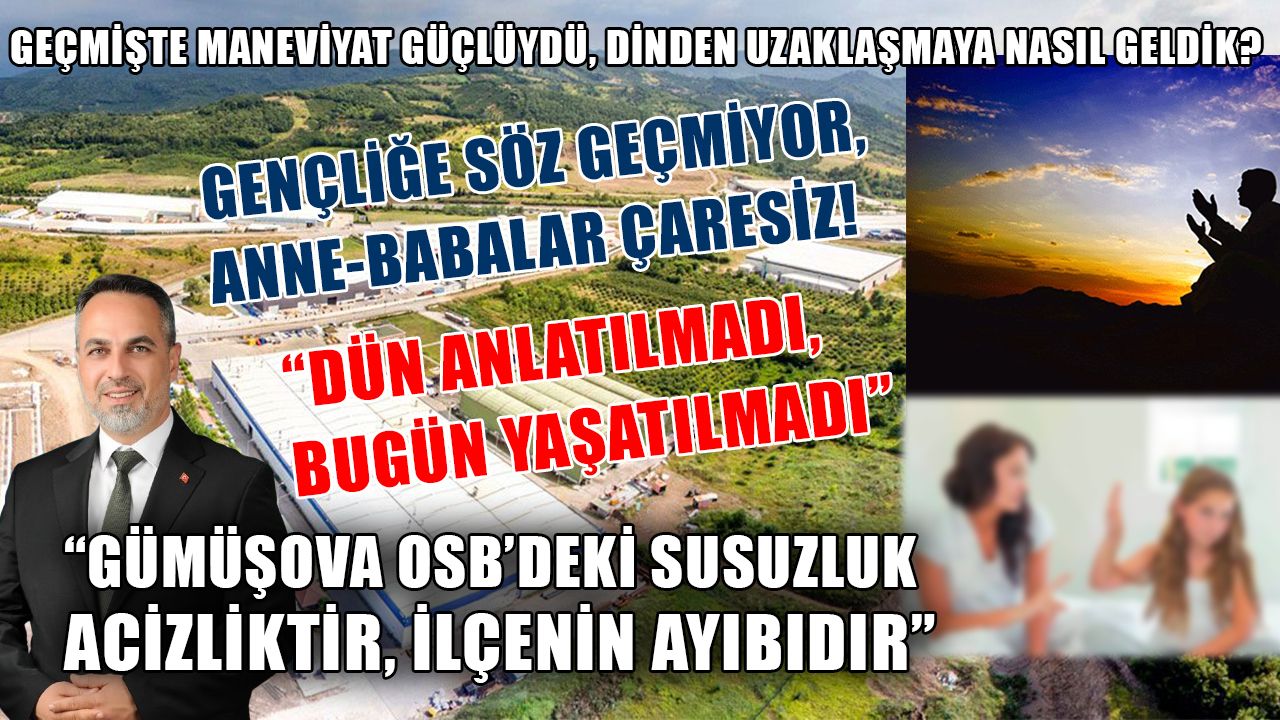 Güçlü aile yapısının korunması adına devlet eliyle yürütülen proje ve uygulamalara rağmen gençler giderek dini değerlerden ve büyüklerine hürmetten uzaklaşıyor. Bu kötü gidişata parmak basan Öncü Medya Genel Yayın Yönetmeni Sadullah Ünsal, “Gençliğe dün anlatılmadı, bugün yaşatılmadı. Anne-babalar bugünkü kanunlarla 18 yaşındaki evladına söz geçiremez, yaptırım uygulayamaz halde!” dedi. Gümüşova OSB’de sanayi kuruluşlarının susuzlukla imtihanını da gündemine alan Ünsal, AK Partili Belediye Başkanı Kenan Sübekçi’nin bu önemli soruna duyarsız kalmaması gerektiğini şu sözlerle vurguladı: “Organize sanayi bölgesinde su yoksa bu Düzce'nin, bu Gümüşova'nın ayıbıdır. Bu ayıbı ortadan kaldırmak lazım. Acizliğidir, bu acizliği ortadan kaldırmak lazım.”