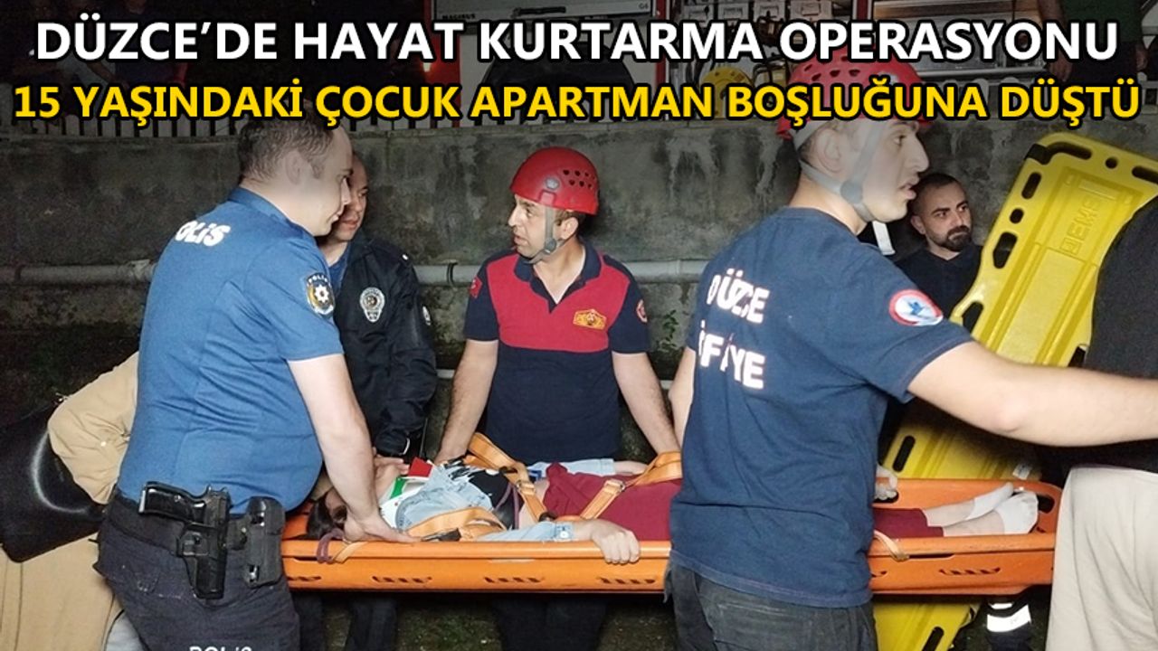 Düştüğü yerden vinç yardımıyla kurtarılan A.B, olay yerindeki ilk müdahalesinin ardından ambulansla Düzce Üniversitesi Tıp Fakültesi Eğitim, Araştırma ve Uygulama Hastanesi’ne kaldırıldı. Hastanede müşahede altına alınan A.B’nin vücudunda çok sayıda kırık olduğu öğrenildi.