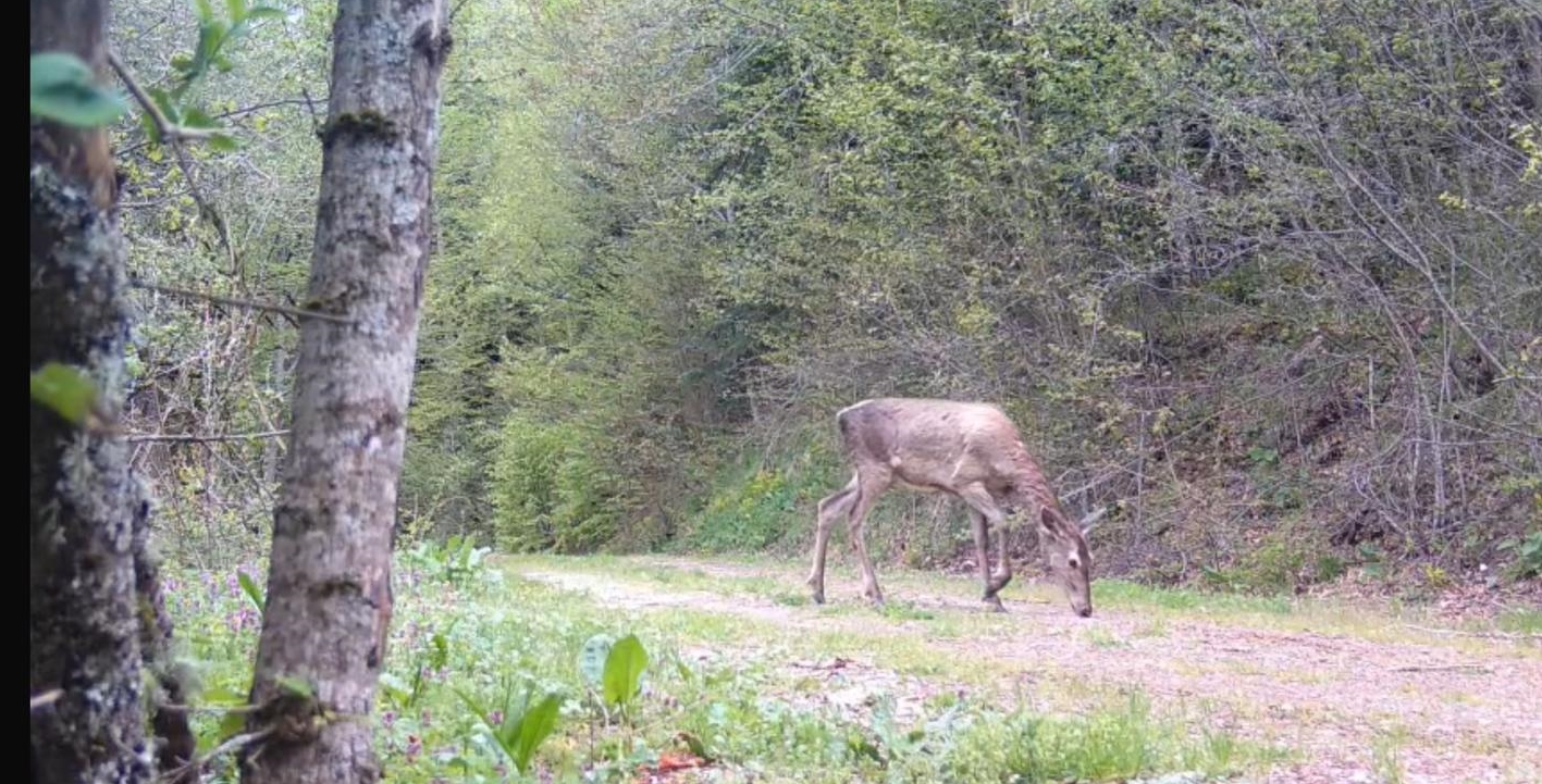 Yeşilin her tonunun hakim olduğu ormanlık alanda geyiklerin otlanması ve ayıların gezinmesi fotokapanla kaydedildi.