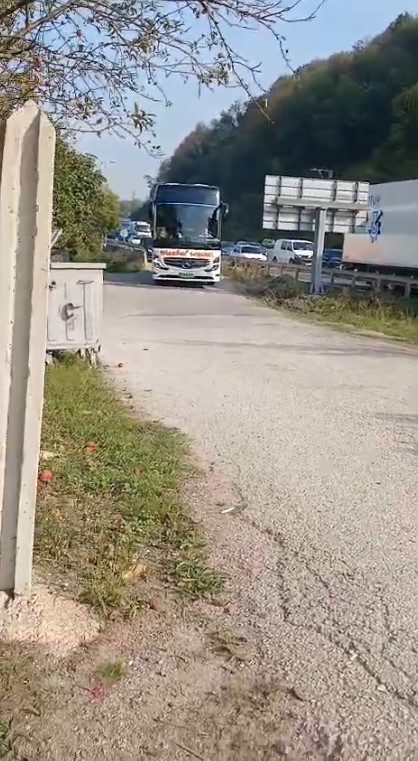 Ankara ve İstanbul’u birbirine bağlayan Bolu Dağı inişindeki D-100 Karayolu Kaynaşlı İlçesine bağlı Darıyeri Hasanbey Köyü Dörtyol mevkisinde yan yol, ağır tonajlı araçlar ve şehirlerarası yolcu otobüsleri, trafiğe takılmamak için yan yolu kullanmaya başladı.