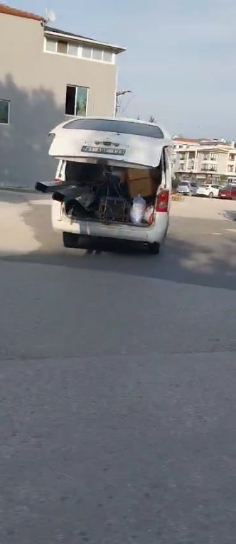 Öte yandan Düzce merkeze bağlı Azmimilli Mahallesi’nde panelvan aracına yüklediği inşaat malzemeleri ile yolculuk yaparak, trafiği tehlikeye atan bir araç sürücüsü, vatandaşlar tarafından cep telefonu kamerası ile görüntülendi.
