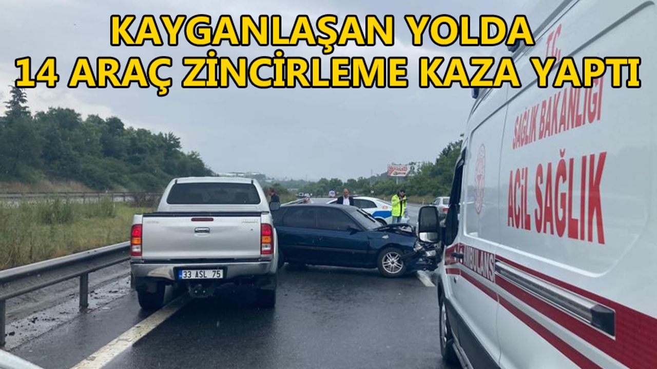 TEM Otoyolu Düzce geçişinde sağanak yağış sebebi ile kayganlaşan yolda zincirleme kaza meydana geldi.