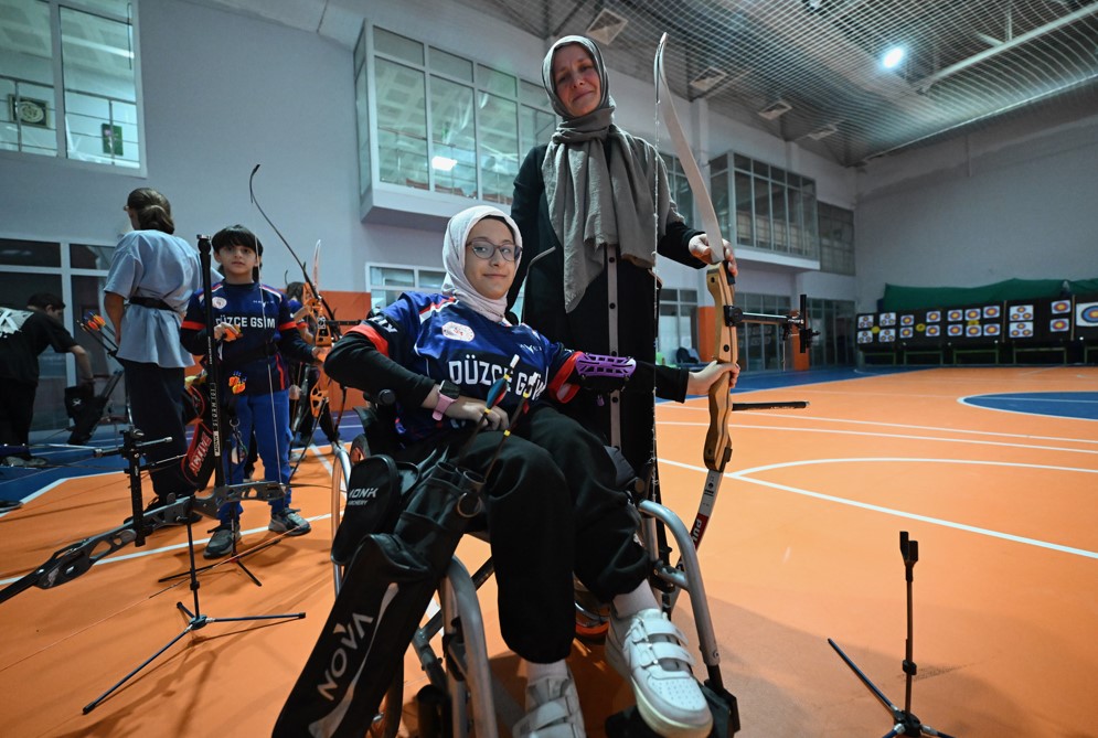 Düzce'de "ayrık omurga" (spina bifida) olarak adlandırılan doğumsal bozuklukla dünyaya gelen 11 yaşındaki Asuman Coşkun, 8 yaşında başladığı okçuluk sporunda yarışlara katılma hedefiyle çalışmalarını sürdürüyor.
