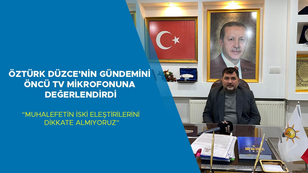 Düzce Belediye Başkanı Dr. Faruk Özlü’nün İSKİ ile ilgili yatırımlarına da değinen Öztürk, bu konuda CHP İl ve Merkez İlçe Başkanları’nın yaptıkları açıklamaları dikkate almadıklarını belirtti. İSKİ’nin Düzce’ye yatırımlarını İstanbul Büyük Şehir Belediyesi’ni AK Parti yönetirken yaptığını kaydeden Öztürk, konuşmasında şu ifadelere yer verdi: