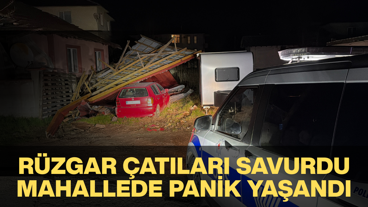 Edinilen bilgilere göre, Yeni Mahalle’de rüzgarın etkisiyle 4 katlı bir binanın çatısı yerinden koparak bitişiğindeki 3 katlı binanın üzerine düştü. Rüzgarın şiddetini artırmasıyla birlikte bu kez 3 katlı binanın çatısı da sökülerek çevrede bulunan bir karavanın, tek katlı bir evin ve park halindeki bir otomobilin üzerine uçtu.