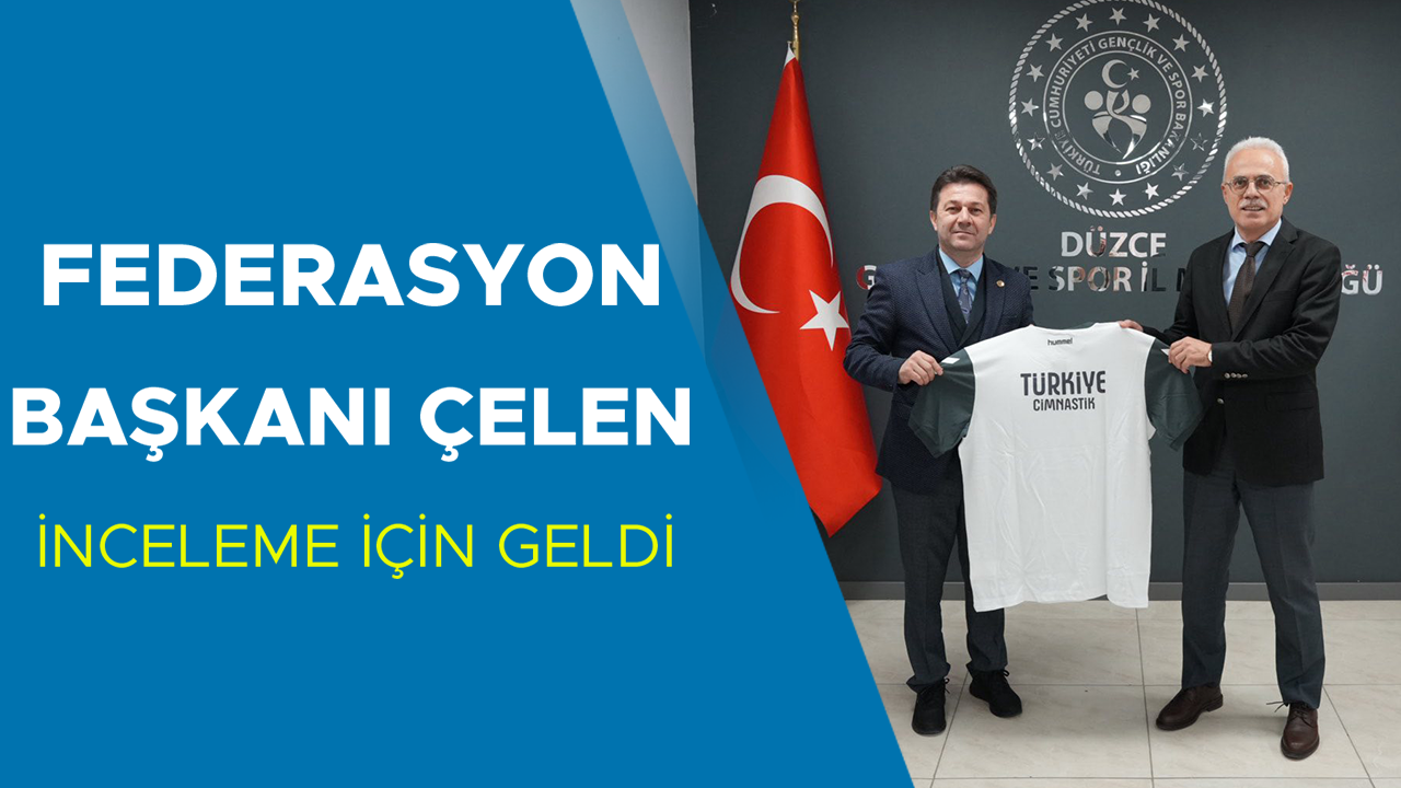 Türkiye Cimnastik Federasyonu Başkanı Suat Çelen, spor hizmetlerini yerinde incelemek ve yetkililerden bilgi almak amacıyla kente geldi. Federasyon Başkanı Çelen, ilk olarak Düzce Gençlik ve Spor İl Müdürü Zekeriya Arslantürk’ü makamında ziyaret etti.