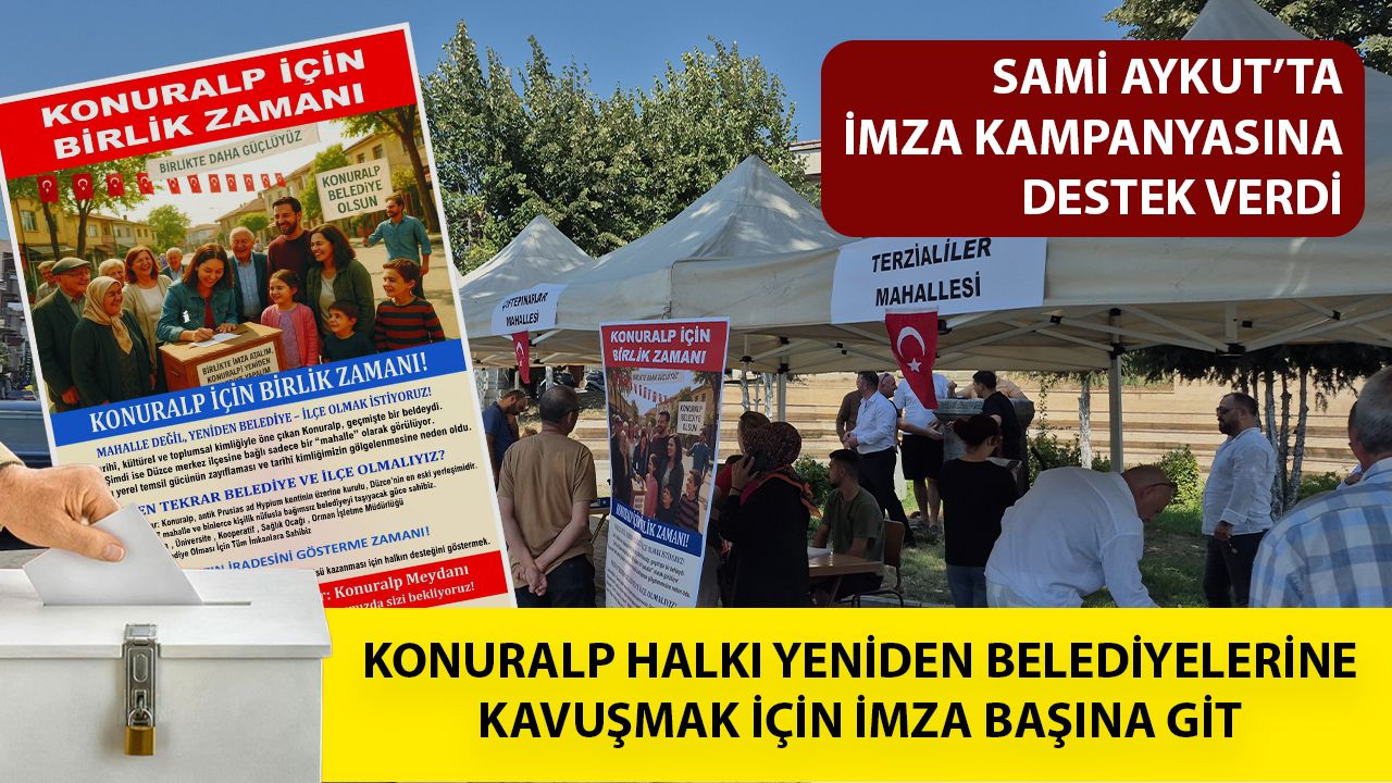 Konuralp’in efsanevi merhum Belediye Başkanı İbrahim Aykut’un oğlu Sami Aykut’a imza kampanyasına destek vererek, tarihi Konuralp’in yeniden belde olmasını istedi.