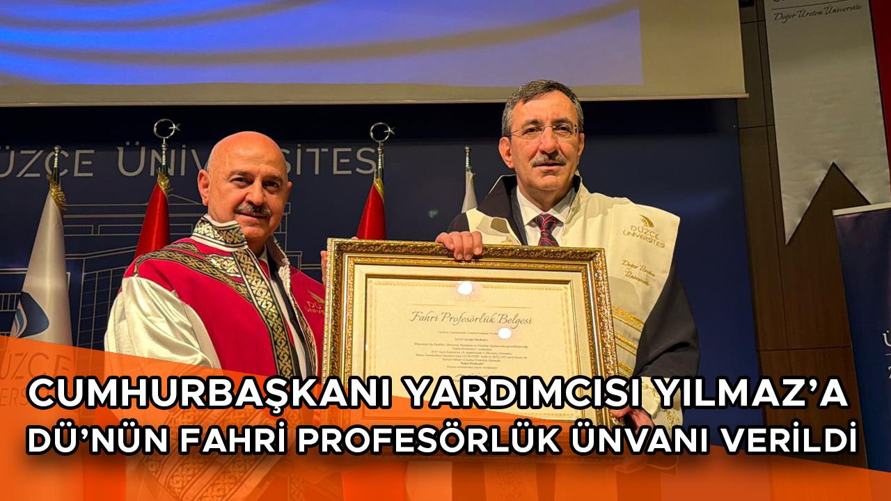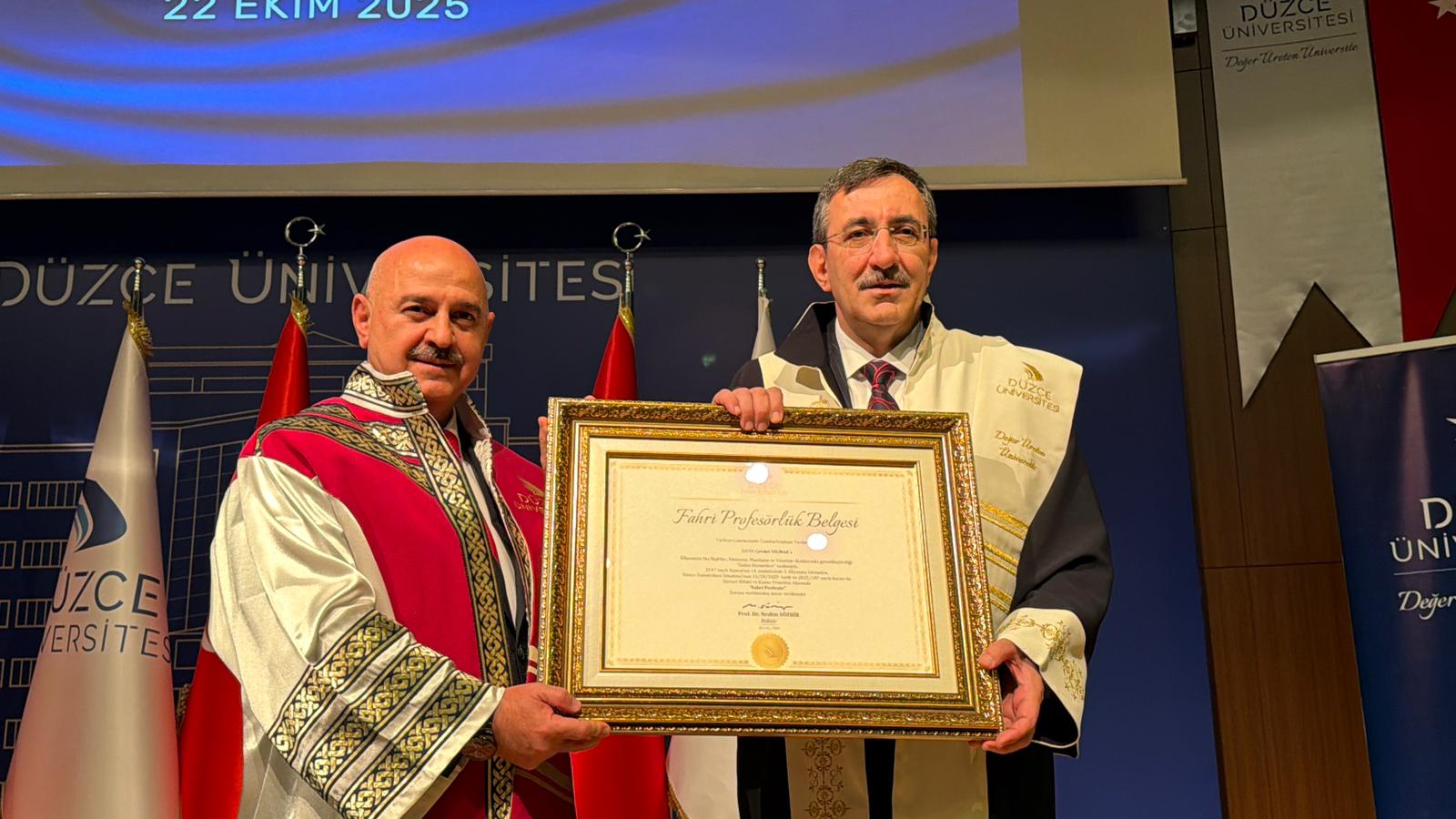 Törende, Düzce Üniversitesi Fahri Profesörlük unvanı verilen Yılmaz’a belgesini Düzce Üniversitesi Rektörü Prof. Dr. Nedim takdim etti.