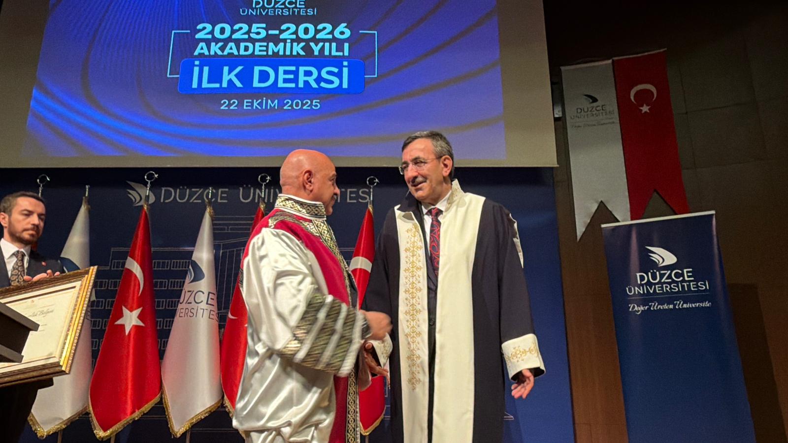 Cumhurbaşkanı Yardımcısı Cevdet Yılmaz, Düzce temaslarına devam ediyor. Düzce Üniversitesi 2025 – 2026 Akademik Yılı’nın ilk ders törenine katılan Yılmaz, burada üniversite yönetimi, akademisyenler ve öğrencilerle bir araya geldi.