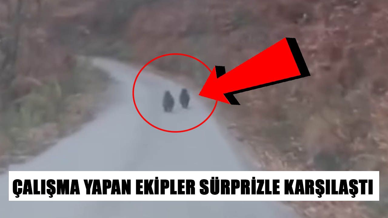 Ekiplerin çalışma gerçekleştirdiği güzergahta, yola aniden çıkan 2 yavru ayı, orman yolunda bir süre ekip aracının önünde ilerledi. O anlar cep telefonu kamerasına yansırken, yavru ayılar koşarak ormanlık alan içerisine girerek gözden kayboldu.