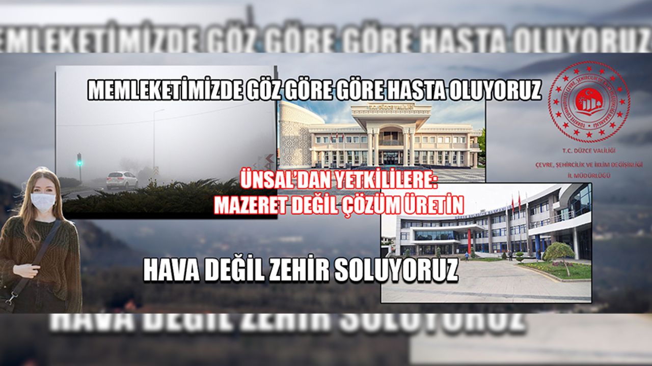Türkiye’nin havası en kirli illeri arasında başı çeken Düzce’de birçok hastalığa davetiye çıkartan bu önemli soruna yönelik kalıcı adımlar atılması gerektiğine işaret eden Ünsal, “Düzce'de hava alamıyoruz, sabahın o kirli havasında 12:00'den, 13:00’den önce güneşi göremiyoruz. Çözüm üretme adına ne yapılması gerekiyorsa bunun yapılması lazım. Ben jeoloji mühendisi değilim. Çevre mühendisi de değilim ama bildiğim bir şey var. Bu mesele mutlak ve mutlak çözülebilecek bir yapıda olmalı. Bir çözümü üretmeli, ilim adamı olmanın, bilim adamı olmanın, makam sahibi olmanın, sorumlu olmanın değerler içinde değerli olmanın kuralı bu. Düzce'de solumak istiyoruz. Hava kirliliğini her zaman yaşamak istemiyoruz. Onun için sanayide yanan yağ, atık yağ olmak üzere kim nerede havanın temizliğini bozuyorsa belediyeler Çevre İl Müdürlüğü ile beraber en etkili çözüm bulunmalı. Mazereti herkes üretir. Önemli olan çare üretmek.” dedi.