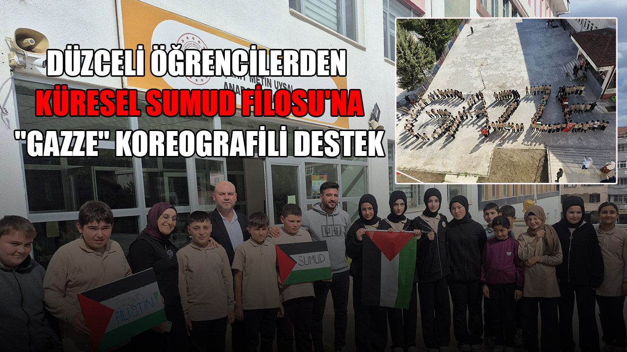 Yığılca Şehit Metin Uysal Anadolu İmam Hatip Lisesi öğretmen ve öğrencileri, Gazze'de yaşanan insanlık dramına dikkati çekmek, Filistin halkı ve Küresel Sumud Filosu'na destek olmak amacıyla koreografi hazırladı.